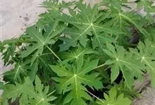 番木瓜,番木瓜科番木瓜属的常绿软木质小乔木,高达10米,具有乳汁;茎不分枝或有时于损伤处分枝;叶大且聚生于茎顶,近似盾形,叶柄中空;花单性或两性,有些品种雄株偶尔生两性花或雌花,…全部>>