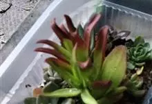 红稚莲是景天科石莲花属的多肉植物。叶片长匙形,先端稍尖,叶面光滑无粉,叶背有凸起的龙骨,叶片翠绿色或深绿色,光照充足、温差加大后,叶尖和叶片上端会变成紫红色,叶片也会变成淡绿中泛白的颜色。…全部>>