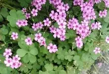 红花酢浆草别名铜锤草、大酸味草、幸运草等,是酢浆草科酢浆草属的多年生直立草本植物。其无地上茎,地下部有球状鳞茎;叶基生,叶柄长5~30cm或更长,被毛;花瓣5,倒心形,淡紫色至紫红色,基部颜色较深。…全部>>