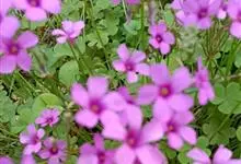 红花酢浆草别名铜锤草、大酸味草、幸运草等,是酢浆草科酢浆草属的多年生直立草本植物。其无地上茎,地下部有球状鳞茎;叶基生,叶柄长5~30cm或更长,被毛;花瓣5,倒心形,淡紫色至紫红色,基部颜色较深。…全部>>