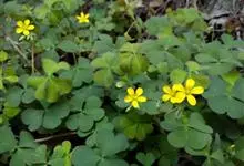 黄花酢浆草:多年生草本植物,全体有疏柔毛;根具肉质鳞茎状或块茎状地下根茎。茎匍匐或斜升,多分枝。叶互生,掌状复叶有多叶,倒心形。叶互生,指状复叶,通常有3小叶,花黄色,萼片5,覆瓦状排列;花瓣5,…全部>>