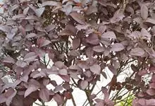 紫锦木是大戟科、大戟属的常绿乔木。叶圆卵形,主脉于两面明显,侧脉数对,边缘全缘,两面红色;花序生于二歧分枝的顶端,总苞阔钟状,裂片呈三角形,边缘具毛,腺体深绿色呈半圆形,…全部>>