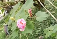 木芙蓉,锦葵科木槿属落叶灌木或小乔木。小枝上有细绒毛;叶片为卵状心形,托叶为披针形,常早落;花单生,花萼为钟形,花冠初为白色或淡红色,后逐渐变为深红色;果实为扁球形,有淡黄色的毛附着。花期8到10月。…全部>>