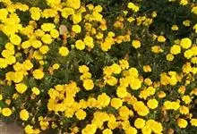 万寿菊是菊科万寿菊属一年生草本植物,别名孔雀菊、缎子花、臭菊花、西番菊、红黄草、小万寿菊、臭芙蓉、孔雀草。万寿菊茎近基部分枝。叶羽状分裂,长5-10厘米,宽4-8厘米,裂片长椭圆形或披针形,具锐齿,…全部>>