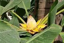 地涌金莲 C. Y. Wu ex H. W. Li)是芭蕉科地涌金莲属多年生丛生草本。地涌金莲徦茎矮小,真茎在开花前短小;叶片长椭圆形;花序直立,生于假茎上,苞片淡黄或黄色;浆果三棱状卵形;种子大,…全部>>