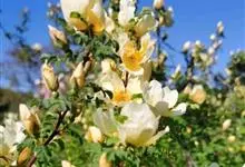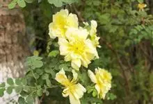 黄木香花 Rehd.)是蔷薇科、蔷薇属植物,为木香花的变型品种,攀缘小灌木,高可达6米。小叶3-5枚,稀7枚,小叶片椭圆形或长圆状披针形,先端急尖或稍钝,基部近圆形或宽楔形,边缘有紧贴细锯齿。花小型,…全部>>