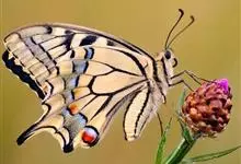 金凤蝶,是鳞翅目凤蝶科凤蝶属动物。金凤蝶为中型凤蝶,翅展70-84毫米,翅背面底色黑褐色,翅脉黑色,翅室具黄斑;前翅背面基部呈暗黄色,亚外缘为黑色,内具一列小黄斑;后翅背面亚外缘区具黑宽边,…全部>>