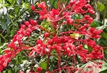 红萼龙吐珠马鞭草科大青属常绿木质藤本。叶对生,纸质,具柄,卵状椭圆形,全缘,先端渐尖,基部近圆形。聚伞花序腋生或顶生,花冠红色,花萼红色,雌雄蕊细长,突出花冠外。核果。花期春至秋末。 全部>>