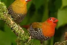 红梅花雀小型鸟类,体长9-10厘米。雄鸟通体朱红色,背、肩、胸等满布白色小斑点,两翅和尾黑褐色均具白色端斑,嘴红色,脚蜡黄色。雌鸟上体淡褐色或赭褐色,翅上中覆羽、大覆羽和内侧飞羽末端具白色斑点,…全部>>