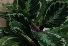 孔雀竹芋:竹芋科,肖竹芋属多年生常绿草本植物。植株挺拔株高可达60厘米。叶柄紫红色, 叶片薄革质,卵状椭圆形,叶面上有墨绿与白色或淡黄相间的羽状斑纹,就像孔雀尾羽毛上的图案,因而得名。…全部>>