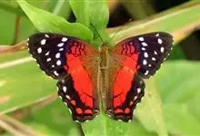优红蛱蝶:翼展4.5-12厘米。是一种美丽的蝴蝶。色彩鲜艳,花纹相当复杂。前足相当退化,短小无爪。前翅R脉5条,常共柄。卵呈半圆球形。幼虫头上常有突起,体节上有枝刺,腹足趾钩1至3序中列式。蛹为垂蛹。全部>>