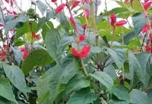 一串红,又称爆仗红、象牙红,为唇形科鼠尾草属植物。花序修长,色红鲜艳,花期又长,适应性强,为中国城市和园林中最普遍栽培的草本花卉。原产巴西、南美洲。喜温暖和阳光充足环境。不耐寒,耐半阴,忌霜雪和高温,…全部>>