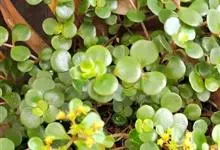 凹叶景天是景天科景天属多年生草本植物。茎细弱,高10-15厘米;叶对生,匙状倒卵形或宽卵形,先端圆微缺,基部渐窄有短距;花序聚伞状顶生,多花,萼片披针形或窄长圆形,先端钝,基部有短距,花瓣为黄色,…全部>>