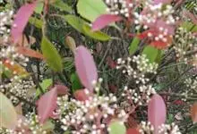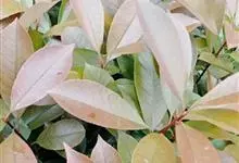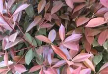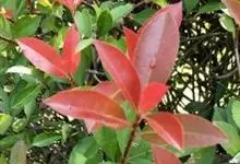 红叶石楠 是蔷薇科,石楠属杂交种,为常绿小乔木或灌木,乔木高可达5米、灌木高可达2米。叶片革质,长圆形至倒卵状、披针形,叶端渐尖,叶基楔形,叶缘有带腺的锯齿,花多而密,复伞房花序,花白色,梨果黄红色,…全部>>