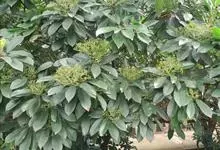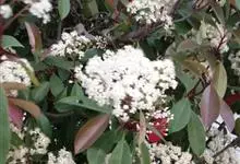 石楠 Kalkman),是蔷薇科石楠属的常绿乔木,高5~12米,株型紧凑,树冠圆球形。树枝为褐灰色;鳞片为褐色,没有毛;叶片革质,长椭圆至侧卵状椭圆形,有锯齿,新叶红色光亮。复伞房花序,白色小花,…全部>>