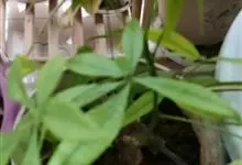 瓜栗 Walp. ),俗称发财树,木棉科小乔木,高4-5米,树冠较松散,幼枝栗褐色,无毛。小叶具短柄或近无柄。花单生枝顶叶腋;花梗粗壮,被黄色星状茸毛,脱落;萼杯状,近革质;花瓣淡黄绿色,狭披针形…全部>>
