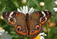 美眼蛱蝶为鳞翅目、蛱蝶科、眼蛱蝶属节肢动物。除西北外,全国各地均有分布,国外分布于日本及东南亚。幼虫以马鞭草科的过江藤、车前草科的车前草等为食。全部>>