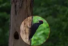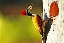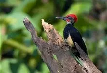 白腹黑啄木鸟,是啄木鸟科、黑啄木鸟属的中型鸟类,体长43-46厘米,头顶具长的红色羽冠,颚纹亦为红色,其余头、颈、胸和上体黑色,腰和腹白色,飞翔时白色腋羽和翅下覆羽亦明显可见。雌鸟头顶黑色,…全部>>