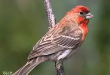 普通朱雀是雀形目雀科朱雀属鸟类,又名红朱雀、马料、青麻料。雄鸟上体红色,下体淡红色;头部、喉部、胸部及腰部亮红色;背部褐色染红色;两翼及尾黑褐色,羽缘染红色。雌鸟上体橄榄褐色,下体近白色,…全部>>