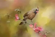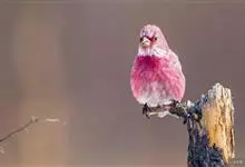 藏朱雀:全长约17-18厘米。雄鸟头部深红色具光辉,喉部暗红色具白色点斑;背部灰白色,各羽具玫瑰红色羽端,形成许多斑纹;腰部淡玫瑰红色;翅暗褐色,沾灰白,羽端沾玫瑰红或灰白色;尾暗棕色,端缘玫瑰红色…全部>>