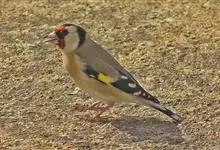 红额金翅雀:共有14个亚种。小型鸟类,体长12-14厘米。额、脸颊和颏朱红色,眼先和眼周黑色,在淡色的头部极为醒目。上体灰褐或乌褐色,尾上覆羽白色,两翅和尾黑色,翅上有黄色斑。下体喉、胸灰褐或乌褐色…全部>>