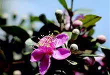 香桃木是桃金娘科香桃木属植物。枝四棱,幼嫩部分稍被腺毛;叶芳香,革质,叶片卵形至披针形;花芳香,中等大且被腺毛,通常单生于叶腋,花瓣白色或淡红色,倒卵形,被腺毛,边缘毛较密,花药黄色,…全部>>
