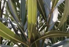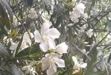 白花夹竹桃是夹竹桃科、夹竹桃属植物夹竹桃的栽培品种。常绿直立大灌木,枝条灰绿色;嫩枝条具稜,被微毛,老时毛脱落。叶3-4枚轮生,下枝为对生,叶面深绿,叶背浅绿色;侧脉纤细平行与中脉成直角;叶柄扁平,…全部>>