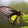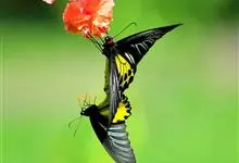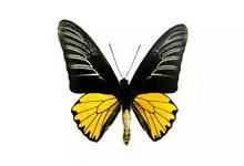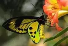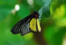 金裳凤蝶是凤蝶科、裳凤蝶属的动物。金裳凤蝶身体呈黑色,头、颈和胸侧有红毛,腹部有黑黄两色相间条纹,雄蝶前翅黑色,具黑天鹅绒光泽,各脉两侧灰白色,后翅金黄色,各室外缘有等腰三角形黑斑1枚,斑内侧有晕,…全部>>