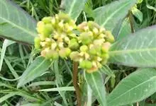 猩猩草:常绿或半常绿灌木,盆栽时株高0.5米-2米,在亚热带地区可长到6米以上。茎直立而光滑,单叶互生,卵状椭圆形至阔披针形,具不规则的深缺刻。长10-15厘米。花小,有蜜腺,排列成密集的伞房花序。…全部>>