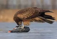 栗鸢:又叫红老鹰,为中型猛禽。体长36-51厘米。虹膜为褐色或红褐色,头、颈、胸和上背白色,其余体羽和翅膀均为栗色。主要栖息于江河、湖泊、水塘、沼泽、沿海海岸和邻近的城镇与村庄。…全部>>