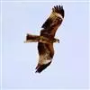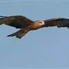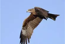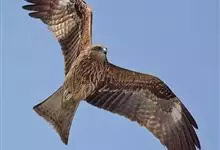 黑鸢:是鹰科、鸢属的一种中型猛禽,共有5个亚种。体长54-69厘米。上体暗褐色,下体棕褐色,均具黑褐色羽干纹,尾较长,呈叉状,具宽度相等的黑色和褐色相间排列的横斑;飞翔时翼下左右各有一块大的白斑。…全部>>