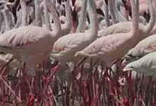 火烈鸟:亦称红鹳。3属6种:高约80-160厘米,体重2.5-3.5千克。体型大小似鹳;嘴短而厚,上嘴中部突向下曲,下嘴较大成槽状 ;颈长而曲 ;脚极长而裸出,向前的3趾间有蹼 ,后趾短小不着地;翅…全部>>