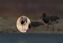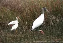 黑头鹮鹳:大型涉禽。体长102厘米,翼展150-175厘米,体重2050-2640克。寿命10年。嘴长而粗壮,飞时头颈伸直。雌雄相似。成鸟上体白色,下体白色。翼下覆羽有黑色横带,具绿色光泽和白色羽缘。…全部>>