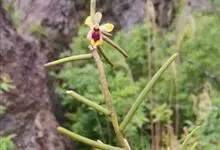 叉唇钗子股 Bl.):茎直立,圆柱形,具多数长2.5-2.8厘米的节间。叶斜立,肉质,圆柱形。总状花序侧生于叶鞘背侧的基部上方,长约1厘米,具1-7朵花;花开展,萼片和花瓣淡黄色或浅白色,在背面和先…全部>>