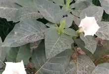 曼陀罗,茄科曼陀罗属一年生大型草本植物,全株光滑。有臭气;叶呈广卯形,边缘具不规则波状浅齿裂;花单生于枝杖间或叶腋,直立,有短梗;花萼是筒状裂片三角形,颜色为白色或淡紫色;果实为蒴果卵状,…全部>>