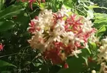 使君子 Jongkind)是使君子科、使君子属攀援灌木,叶对生,椭圆形,两面均被灰白色柔毛。穗状花序,倒挂下垂。花期夏秋。果有五棱,熟时黑色,种子白色。分布于印度、缅甸、菲律宾和中国。喜温润,深根性,…全部>>