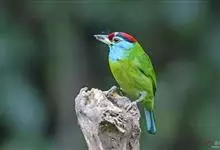 蓝喉拟啄木鸟,是须鴷科、拟啄木鸟属的鸟类。蓝喉拟啄木鸟为小型鸟类,体长20-23厘米。前额至头顶鲜红色,其上有一宽阔的黑色横带,将此红色分为前后二块;头侧、颏、喉蓝色,下喉两侧各具一红色点斑。…全部>>
