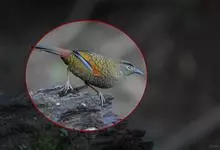 大噪鹛:中型鸟类,体长32-36厘米。额至头顶黑褐色,背栗褐色满杂以白色斑点,斑点前缘或四周还围有黑色。初级覆羽、大覆羽和初级飞羽具白色端斑。尾特长,均具黑色亚端斑和白色端斑。颏、喉棕褐色,…全部>>