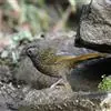 黄喉噪鹛体型略小,顶冠蓝灰色,特征为具黑色的眼罩和鲜黄色的喉。上体褐色,尾端黑色而具白色边缘,腹部及尾下覆羽皮黄色而渐变成白色。黄喉噪鹛隐匿于亚热带常绿林和浓密灌丛,于地面杂物中取食,喜食昆虫,…全部>>