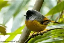 金胸雀鹛是莺科、雀鹛属小型鸟类,体长10-11厘米。头黑色,头顶中央有一道白色中央冠纹,颊和耳羽亦为白色,在黑色的头部极为醒目。上体深灰沾绿。两翅黑色,外侧飞羽有黄色外缘和白色端斑;尾凸状、黑色。…全部>>