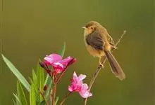 白喉林莺:体长10-13厘米,是一种类体型略小的莺鸟。喉白,上体灰褐或沙褐色,头顶较灰,贯眼纹黑褐或暗褐色。下体污白。耳羽深黑灰,胸侧及两胁沾皮黄色、褐色或淡粉红色。外侧尾羽羽缘白色。…全部>>