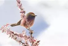 花彩雀莺:体长9-12厘米,是一种毛茸茸偏紫色的雀莺。顶冠棕色,眉纹白。尾长,羽毛松软。前额有一宽阔的眉纹淡黄色,头顶栗色或棕红色,有的具紫蓝色光泽。背灰色,腰和尾上覆羽辉紫蓝色,飞羽灰褐色。…全部>>