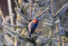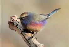 凤头雀莺:小型鸟类。体长9-10厘米,雄鸟呈毛茸茸的紫色和绛紫色,顶冠淡紫灰色,额及凤头白色,尾全蓝。雌鸟喉及上胸白,至臀部渐变成淡紫色,耳羽灰,…全部>>