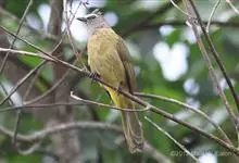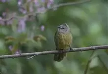 黄绿鹎,小型鸟类,体长19-22厘米。额至头顶暗褐具灰色羽缘,眼先黑色,其上面有一粗著的白纹从鼻后至眼,在黑色的头部极为醒目。上体橄榄绿褐色。颏、喉淡灰色或灰白色,胸灰褐色具橄榄黄色羽缘,…全部>>