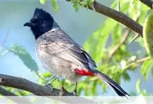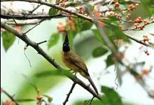 黑喉红臀鹎是雀形目鹎科鹎属鸟类,别称有黑头公、红臀鹎。头顶黑色具光泽;后颈、肩和背暗褐具灰色狭缘;腰羽几纯暗褐,尾上覆羽近白色,羽端浅灰褐色;尾羽褐黑,中央尾羽具狭窄的白色端斑,…全部>>