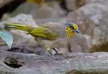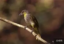纹喉鹎:体长19厘米,是一种中等体型的偏绿色鹎。特征为头顶、脸颊、颏及喉均具黄色条纹。上体橄榄绿色。胸腹暗灰色,肛周和尾下覆羽艳黄。不可能与任何其他鹎类混淆。虹膜褐色;嘴黑色;脚粉褐色。…全部>>