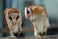 栗鸮:是鸟纲、草鸮科的猫头鹰。体长约29厘米,体重311-360克。是一种中等体型的红褐色鸮。其心形脸庞及时而竖起的“耳朵”与仓鸮甚似。上体红褐而具黑白点斑,下体皮黄偏粉具黑点,脸近粉色。虹膜深褐色,…全部>>