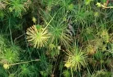 纸莎草是莎草科、莎草属的植物,具有粗壮的根状茎,高达2-3米,茎秆簇生,粗壮,直立,钝三棱形。叶退化呈鞘状,茎秆顶端着生总苞片,呈伞状簇生,总苞片叶状,披针形,顶生花序伞梗极多,细长下垂。瘦果灰褐色,…全部>>