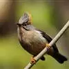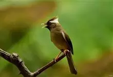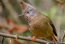 纹喉凤鹛:小型鸟类,体长13-16厘米。头顶和羽冠暗褐色或褐灰色,上体橄榄褐色,飞羽黑褐色,外侧次级飞羽表面橙黄色,构成一块纵形翼斑,极为醒目。颏、喉淡棕白色,具黑色纵纹,腹和尾下覆羽橙黄色。…全部>>