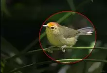 黄喉雀鹛是雀眉科、拟希鹛属小型鸟类,体长11-12厘米。头顶浅黄色具黑色鳞状斑,头顶两侧各有一道黑色侧冠纹,眉纹浅黄色、长而宽阔。上体灰绿色,两翅和尾褐色而具浅黄色窄缘。下体淡黄色。特征明显,…全部>>